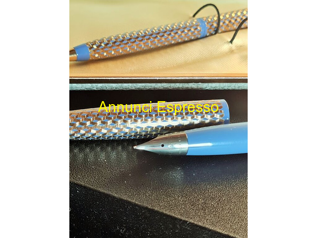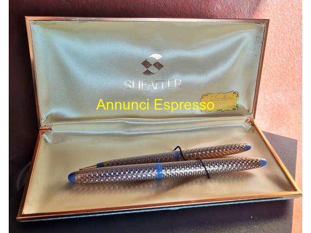 Parure penne Sheaffer Lady Skripsert formata da prezzo EUR.98,00 Parure penne Sheaffer Lady Skripsert formata da stilografica e micromina . Vintage primi anni '70 realizzate negli Stati Uniti custodia con etichetta Ercolessi Milano . Il cappucci e il corpi presentano la finitura Paisley Periwinkle . La penna stilografica usata ? dotata di un pennino in acciaio stile Triumph e utilizza cartucce standard Sheaffer. Tutte in buone condizioni generali come da foto . Vendo a Euro 98 . Gradito contatto telefonico wapp . Lodi (LO)