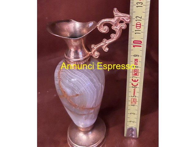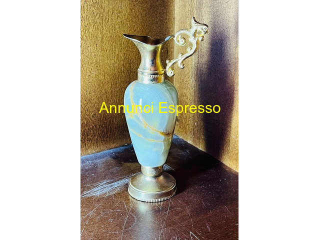 Piccola brocca decorativa prezzo EUR.25,00 piccola anfora da collezione in onice e ottone anni 50 ideale per decorazioni retrò altezza cm. 13 Follonica (GR)