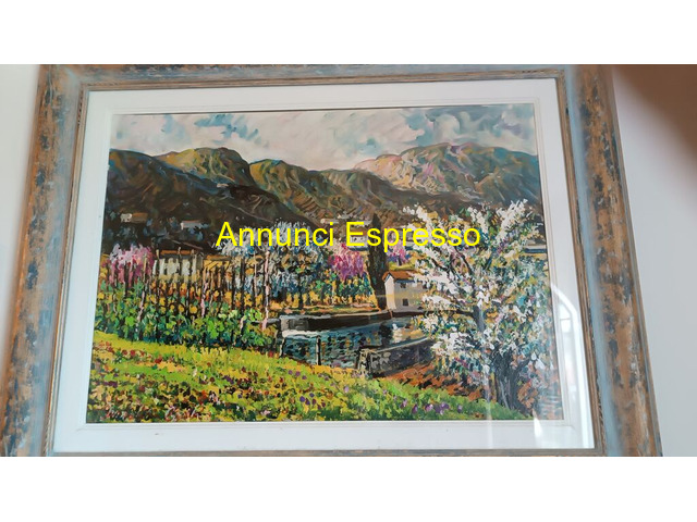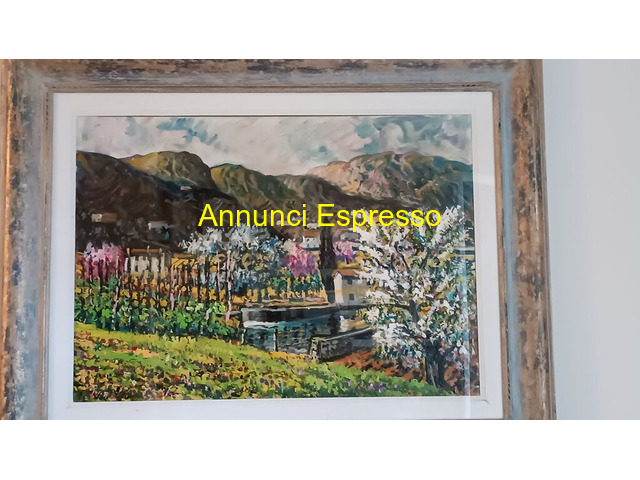 Pittura paesaggistica: primavera a Cireglio prezzo EUR.5.000,00 Pittura 50x70 di pittore pistoiese , ( paesaggista) Aristodemo Capecchi: primavera a Cireglio. Sarzana (SP)
