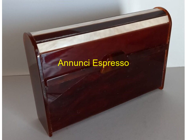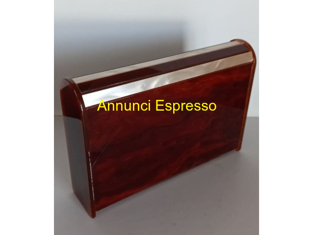 Porta carte beauty case pochette borsa a mano vin prezzo EUR.68,00 Borsa vinPorta carte beauty case pochette borsa a mano vintage anni '70 in acrilico -bachelite bicolore , interno foderato di stoffa creme , dimensioni : cm . 18 x cm . 11 x cm 2, 5 . Carte da gioco nuove vergini Renzo Romagnoli Bologna e dadi poker . Vendo Euro 68 . Gradito contatto telefonico . [NUM] Lodi (LO)