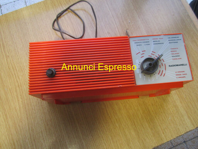 RADIO D EPOCA -RADIOMARELLI RD 329 AM -1970 - AR prezzo EUR.50,00 RADIO-- VINTAGE. --Modello RADIOMARELLI RD 329 del 1971 MODERNARIATO. Piccola ma grintosa, color arancio SEGNALE AM . Presenta alcuni segni del tempo nella parte ALTA sinistra. Realizzata dalla Marelli negli stabilimenti di Sesto San Giovanni. Dimensioni 29 cm x 11 cm, profondit? 11 cm. -FUNZIONANTE IL PREZZO E DI 50 EURO INCLUSO EVENTUALE SPEDIZIONE IDEALE DA INSERIRE IN PICCOLA COLLEZZIONE PERSONALE PER QUALSIASI INFORMAZIONE RISPONDO SOLO A CONTTATTO TELEFONICO AL Radio vintage rossa, stile retr?, con manopole per sintonizzazione e volume, in buone condizioni. Perfetta per collezionisti. Mondragone (CE)