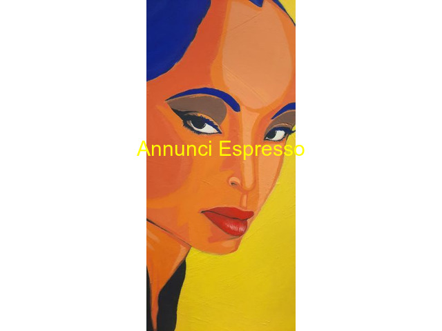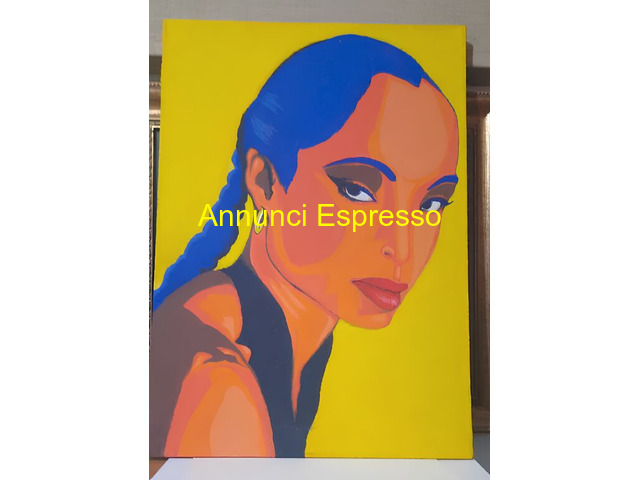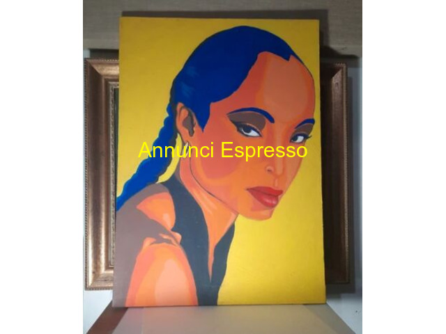 SADE ADU dipinto PopArt prezzo EUR.150,00 ?Just Helen? ? Acrilico su tela, 50×70 cm Omaggio vibrante a Helen Folasade Adu, voce e icona della band Sade. In stile pop art, questa opera cattura la sua eleganza magnetica con colori audaci e contrasti netti. Lo sguardo intenso, la criniera blu e il fondo giallo acceso creano una tensione visiva che celebra la forza femminile e il mito musicale. Un pezzo unico, realizzato a mano, che fonde musica, identità e arte contemporanea. Napoli (NA)