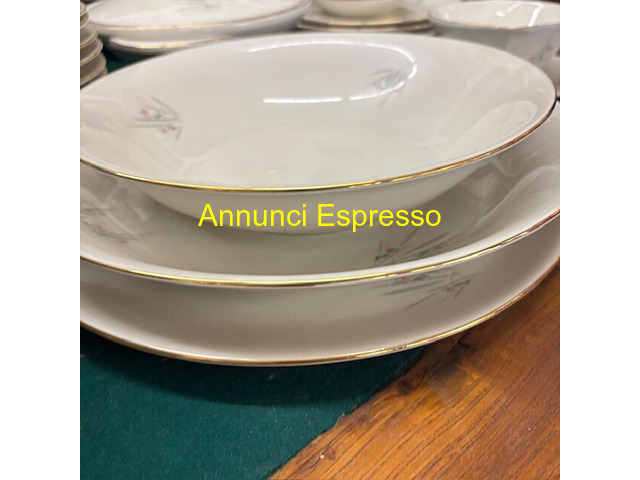 Servizio portata Vintage anni 60 in porcellana prezzo EUR.350,00 Servizio portata Vintage anni 60 in porcellana di Bavaria composto da 36 piatti piani , 12 piatti fondi 2 zuppiere , 8 vassoi e 1 ciatolina . Pz totali 59 . Buono stato di conservazione. Viterbo (VT)