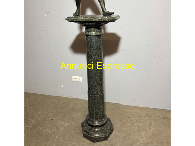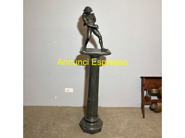 Splendida antica scultura raffigurante Satiro prezzo EUR.1.540,00 Splendida antica scultura raffigurante Satiro epoca XIX secolo in bronzo , di bellissima qualità e patina su colonna in marmo verde Alpi. Mis Altezza totale 172 . Altezza Bronzo cm 52 Larghezza base colonna cm 40 x 28 . Leggere usure alla colonna . Viterbo (VT)