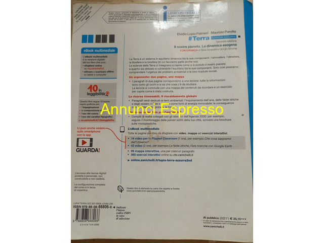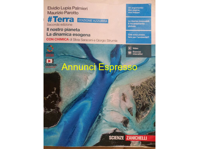 Terra con chimica. Il nostro pianeta-La dinamica prezzo EUR.13,00 Terra con chimica. Il nostro pianeta-La dinamica esogena con chimica. Ediz. azzurra. Per il primo biennio delle Scuole superiori. di Elvidio Lupia Palmieri, Maurizio Parotto, Silvia Saraceni. Editore: Zanichelli. Edizione: 2 Data di Pubblicazione: 30 gennaio 2020 EAN: [NUM] ISBN: [NUM] Pagine: 328 Formato: prodotto in pi? parti di diverso formato Tipologia: Scuola secondaria di secondo grado (medie superiori) Libro "Terra" di Elda Lucia Pieroni e Maurizio Parotto. Trattato su dinamica esogena. Edizione Zanichelli. Ottimo stato. Desio (MB)