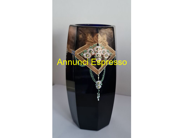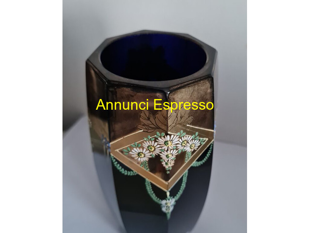 Vaso in vetro blu cobalto con inserti floreali in prezzo EUR.238,00 Vaso in vetro blu cobalto con inserti floreali in oro, dipinto a mano attribuibile a Josef Riedel, senza scheggiature o incrinature con segni uso come da foto. Dimensioni cm . 18, 5 x cm . 7, 5 . Vendo ? 238. Gradito contatto telefonico wapp. [NUM]. Lodi (LO)