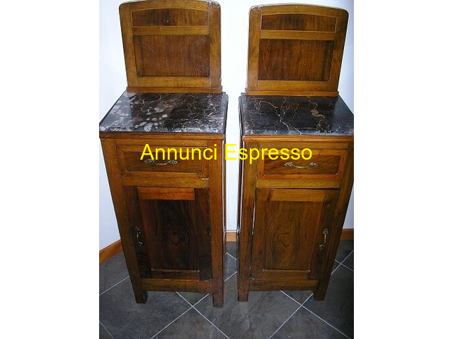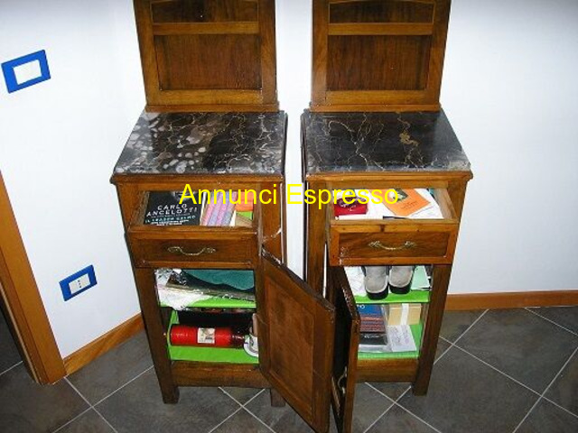 Vendo Comodini Antichi con marmo prezzo EUR.200,00 Vendo Comodini Antichi con marmo, in ottime condizioni, tenuti benissimo, molto belli. Misure: altezza con spalliera 116 cm, senza 85 cm, larghezza 41 cm profondità 34 cm. prezzo 200, 00 totali. Due comodini in legno massello con piano in marmo, design classico. Presentano un cassetto e una porta sul frontale. Ideali per arredare camere da letto in stile vintage. Buone condizioni. Dimensioni contenute per spazi ristretti. Zola Predosa (BO)