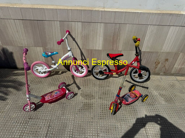 VENDO N. 2 PASSEGGINI TRICICLO � 150, 00 TOTALE gioco per bimbi Fascia di età 3-6 anni prezzo EUR.1,00 Cinque veicoli per bambini: monopattino rosa, scooter, bici rossa e triciclo. Buone condizioni, adatti per bambini. La vendita � possibile anche singolarmente. Per info contattate il Andria (BT)