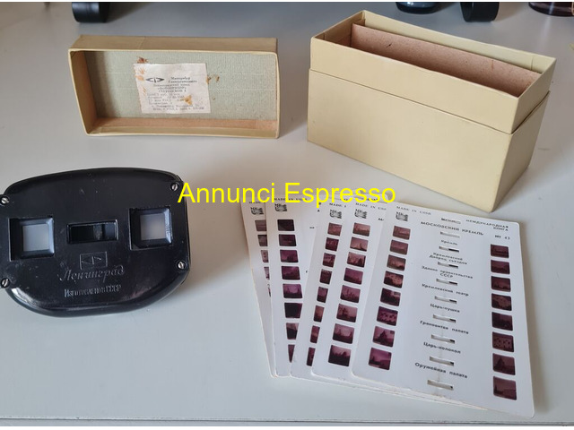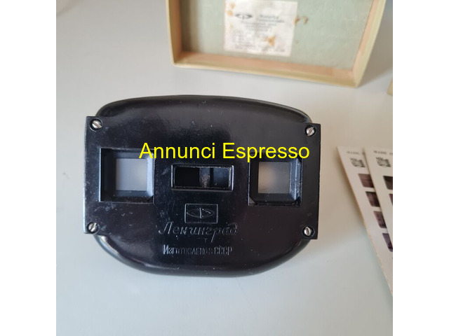 Visore stereoscopio russo 01.1957 realizzato i prezzo EUR.78,00 Visore stereoscopio russo 01. 1957 realizzato in bakelite con n?5 serie di n? 8 foto Mosca . Vendo a ? 78. Gradito contatto telefonico wapp . Lodi (LO)