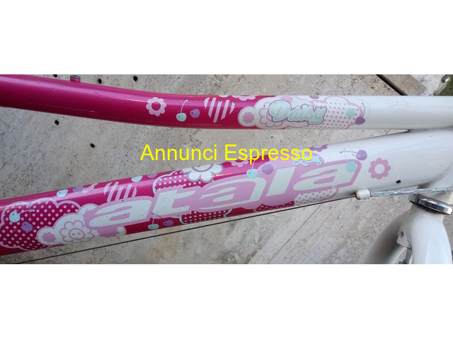 Bicicletta Atala 24 tipo bicicletta: da donna prezzo EUR.120,00 Bicicletta Atala 24" Daisy da fanciulla in perfetto stato misura ruote 24" corona pedali 3 rapporti corona ruota posteriore 6 rapporti totale 18 marce cambio Shimano sella manubrio regolabili ritiro e visionabile su Grosseto. Bicicletta usata, colore rosa e argento, ruote grandi, adatta per ragazzi, in buone condizioni, con sellino imbottito. Grosseto (GR)