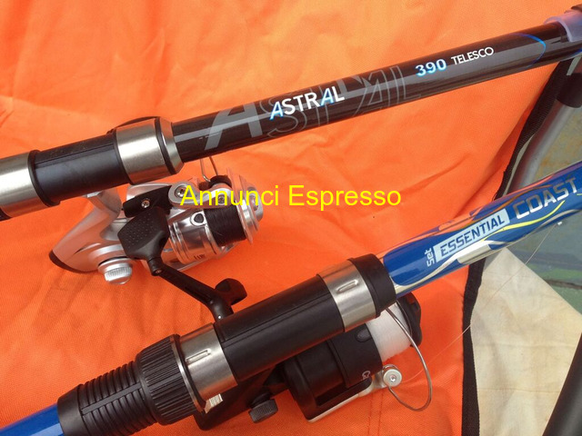 DUE CANNE DA PESCA-CON MULINELLI+SEDIA ASTRAL+COST ASTRAL+COAST prezzo EUR.130,00 DUE CANNE DA PESCA SEMI-PROFESSIONAL CARPERLAN ASTRAL 390 + COAST 350 COMPLETA DI MULINELLO . . . NUOVA MAI USATA . . . . . . AVENDO LE SEGUENTE CARATTERISTICHE. . . . . . . . - Telescopica. Elementi: 4, in fibra di vetro e carbonio. - Porta mulinello: a vite, resistente all'acqua di mare. - Anelli: 4+ 1, legati. - Peso:378 g. MULINELLO: - Sea 50. - Frizione: anteriore micrometrica. - Cuscinetto: a sfera. - Bobina: alluminio. - Ratio: , 85:1. - TMV: 74 cm. Capienza in m/mm: 220/0. 35, - 170/0. 40, - 100/0. 50; in lb/yd: 10/330 12/290 15/210. Bobina di alluminio. . . + SEDIA PIEGHEVOLE MODELLO BASSO CON BORSA TRASPORTO IL PREZZO DELLE CANNE + SEDIA E DI 130 EURO INTRATTABILE . . . . . EVITATE PERDI TEMPI . . . IL PREZZO E QUELLO SCRITTO. . . . . . . . . . . . . NON SCAMBIO MERCE - VENDO SOLO IN BLOCCO NO SINGOLARMENTE . . . . . . POSSIBILE CONSEGNA A DOMICILIO GRATIS. . . . . . . . IN CAMPANIA. . . NON Rispondo email?. . Due canne da pesca con mulinelli su sedia pieghevole arancione. Ottime condizioni, ideale per pescatori. Napoli (NA)