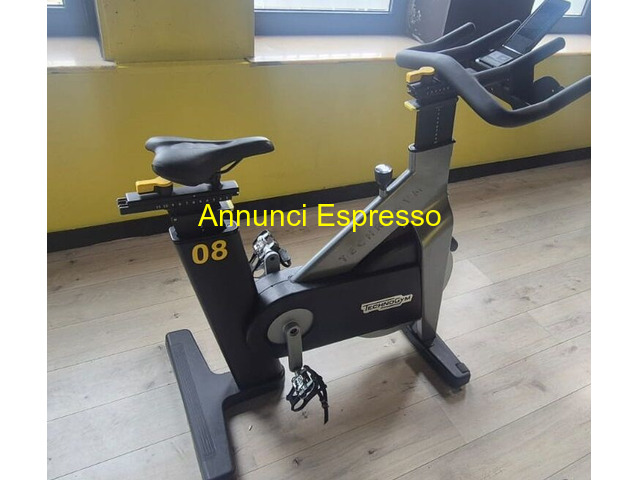 Lotto 7 Bikes Technogym Group Cycle Connect Technogym prezzo EUR.6.300,00 Vendo lotto di nr 7 bikes professionali marca Technogym modello Group Cycle Connect (Spin Bike). Sono il modello con display integrato autoalimentato e connettività Wi-Fi e Bluetooth. Variante grigia. In ottime condizioni generali, regolarmente manutenute e curate. Pochissima attività svolta, nessun gioco, nessun lasco. Per dettagli chiamarmi direttamente. Il prezzo è in linea con il modello, lo stato d'uso e le condizioni generali. Trasporto non contemplato. Bici da spinning professionale marca sconosciuta, colore nero e grigio, con numero identificativo 08, in buone condizioni. Simona [NUM] Ostuni (BR)
