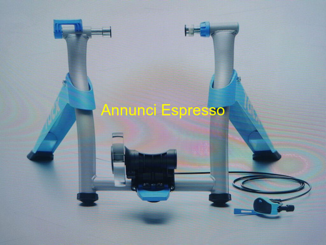 RULLI PER ALLENAMENTO TACX prezzo EUR.50,00 Tacx Satori Smart Rulli, colore blu, argento e nero, per allenamento indoor. Condizione usata, ma in buone condizioni. Meccanismo della resistenza: Aria. Nome modello: Satori Smart. Dimensioni ruote: 1 Angstrom. Unit? regolazione cambio: Magnetico Simulazione di pendenza: 10 Posizioni ANT+/Bluetooth Smart App Tacx Cycling e App Tacx Training Trasmette velocit?, cadenza e potenza via ANT+ Bluetooth Smart. L?applicazione per tablet permette di partecipare alle classiche corse di biciclette e alle tappe leggendarie. Potrete creare i vostri programmi di allenamento ed esercitarvi in base alla vostra frequenza cardiaca, alla pendenza e alla potenza prodotta. Potenza max: 950 W Alimentazione di rete obbligatoria: No Include Skyliner (supporto ruota anteriore) Potenza (PZ)