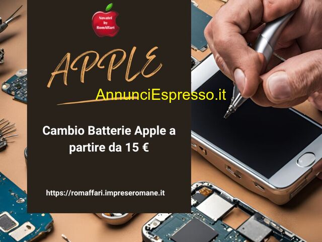 Apple Cambio Batteria Roma - OFFERTISSIMA! Apple prezzo EUR.15,00 Apple Cambio Batteria Roma - PROMO! Hai bisogno di cambiare la batteria del tuo iPhone senza spendere una fortuna? Da Novatel by RomAffari, puoi farlo con soli 15?! E se hai un iPad con il vetro rotto, la riparazione ti costerà non più di 50?! Siamo a Roma Prati in Via Giuseppe Gioachino Belli n° 64 e operiamo anche nei quartieri Trastevere, Flaminio, Balduina, Parioli, Pietralata. Affidati ai nostri esperti, attivi dal 1999, per riparare Cellulari, SmartPhone, Tablet, Console e Notebook. Scopri come approfittare di questa offerta visitando il nostro sito: RomAffari. Imprese-Romane. it Contattaci ora al 06. [NUM] o 329. 3499165! / WhatsApp 06. [NUM]! Oppure vieni a trovarci nel nostro laboratorio! Ripariamo il tuo dispositivo in tempi rapidi e con la massima qualità ! *Apple Cambio Batteria Roma, *Cambio Batteria iPhone, * Riparazione iPad, * Roma Prati, * Riparazione Smartphone Roma, * Riparazione Tablet Roma, * Riparazione iPhone Roma Roma (RM)