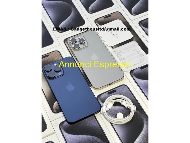 Apple iPhone 15 Pro Max, iPhone 15 Pro, 15 Plus Apple iPhone prezzo EUR.560,00 Apple iPhone 15 Pro 128GB ----- 700 EUR , Apple iPhone 15 Pro 256GB ----- 760 EUR , Apple iPhone 15 Pro 512GB ----- 830 EUR , Apple iPhone 15 Pro 1TB ----- 930 EUR , Apple iPhone 15 Pro Max 256GB ---- 800 EUR , Apple iPhone 15 Pro Max 512GB ----- 870 EUR , Apple iPhone 15 Pro Max 1TB ----- 1000 EUR , Apple iPhone 15 128GB ---- 530 EUR , Apple iPhone 15 256GB ---- 560 EUR , Apple iPhone 15 512GB ---- 630 EUR , Apple iPhone 15 Plus 128GB ----- 560 EUR , Apple iPhone 15 Plus 256GB ----- 610 EUR , Apple iPhone 15 Plus 512GB ---- 680 EUR Bologna (BO)
