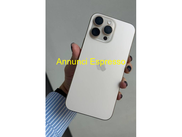 iPhone 16 pro max Apple prezzo EUR.1.175,00 iPhone 16 pro max titanio bianco praticamente nuovo lo vendo causa cambio modello. Il telefono contiene anche cover e caricatore originale. Ghedi (BS)