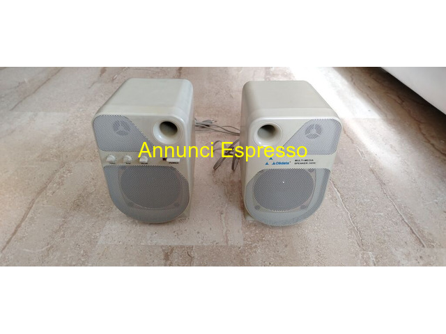 Casse/Tastiera/Mouse funzionanti e ben tenuti Olidata prezzo EUR.80,00 VENDO CASSE/TASTIERA/MOUSE marca Olidata come da foto perfettamente funzionanti (verificato con tecnico). Le 2 casse con suo appoggio stabile e 3 rotelle regolabili (volume e altre due funzioni oltre al pulsante di accensione/spegnimento con luce rossa quando casse accese) compreso copri casse in tessuto; tastiera con tasti ben visibili e buon appoggio; mouse con rotella quindi non si consuma mai e i due tasti abbastanza grandi; microfono regalo. Verificare attacco da mettere al pc/computer (non è usb, solo per mouse e tastiera in quanto casse e microfono sono jack). Vendo tutto il pacchetto a 80 euro. Per ulteriori informazioni e/o altre foto scrivere a: Rimini (RN)