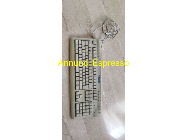 Casse/Tastiera/Mouse funzionanti e ben tenuti Olidata prezzo EUR.80,00 VENDO CASSE/TASTIERA/MOUSE marca Olidata come da foto perfettamente funzionanti (verificato con tecnico). Le 2 casse con suo appoggio stabile e 3 rotelle regolabili (volume e altre due funzioni oltre al pulsante di accensione/spegnimento con luce rossa quando casse accese) compreso copri casse in tessuto; tastiera con tasti ben visibili e buon appoggio; mouse con rotella quindi non si consuma mai e i due tasti abbastanza grandi; microfono regalo. Verificare attacco da mettere al pc/computer (non è usb, solo per mouse e tastiera in quanto casse e microfono sono jack). Vendo tutto il pacchetto a 80 euro. Per ulteriori informazioni e/o altre foto scrivere a: Rimini (RN)