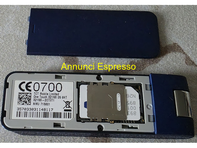 Internet Key One Touch X215S Tim chiavetta Tim prezzo EUR.30,00 Internet Key One Touch X215S Tim, chiavetta che consente la navigazione Internet dal proprio computer in modo facile e veloce, grazie alla tecnologia HSDPA 7. 2 e HSUPA, con slot microSD incluso, si collega al proprio PC, in modalità plug and play, attraverso l'interfaccia USB, perfettamente funzionante con scheda sim della Tim. VENDO -*- PREZZO * NON * TRATTABILE -*- - NON inviate messaggi o proposte di acquisto per cortesia, Sentiamoci telefonicamente per evitare incomprensioni, che spesso via messaggio si verificano. SE interessati oppure per ulteriori dettagli ed info. Solo ed esclusivamente contattatemi telefonicamente al 393/5716945 Ferrara (FE)
