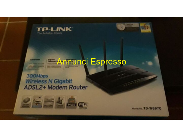 MODEM ADSL TP LINK COME DA FOTTO ALLEGATA TP LINK prezzo EUR.10,00 Router TP-LINK modello TD-W8970, velocità 300Mbps, tecnologia Wireless N Gigabit, ADSL2+ Modem Router. Nuovo, completo di imballo originale. Adatto per una connessione internet veloce e stabile. Ideale per uso domestico o ufficio. Cornaredo (MI)