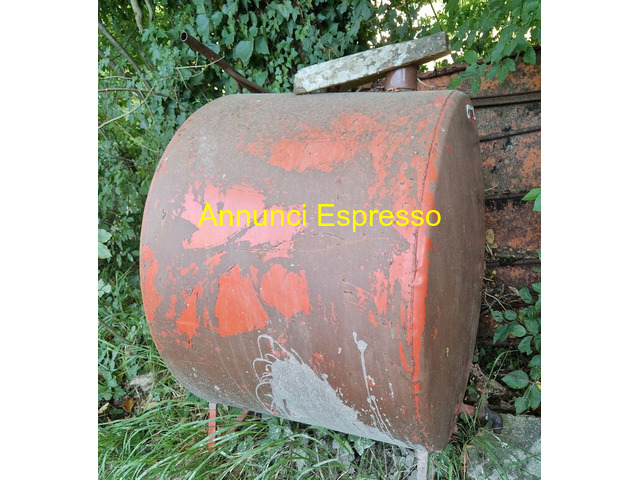 3 botti-serbatoi gasolio prezzo EUR.80,00 3 botti-serbatoi gasolio in metallo ditta Del Morino per gasolio. Diametro cm100- lunga cm85, capacità calcolata 667 litri. Euro 80 l?una. Vendo per decesso del proprietario. Altri attrezzi in vendita da concordare separatamente. tel. [NUM] San Giustino (PG)