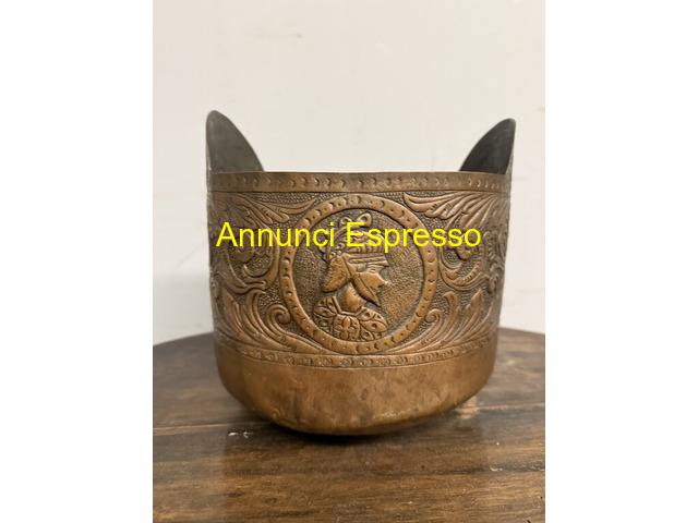 € 450 Antico cestello in rame sbalzato, XIX sec, 22x22cm Viterbo