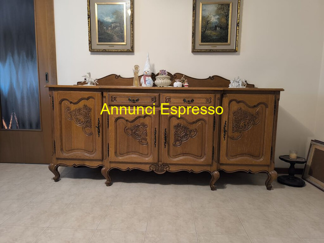Armadio sala prezzo EUR.800,00 Armadio per sala da pranzo o taverna in rovere Mobile in legno intagliato, stile classico, con quattro ante e tre cassetti. Dettagli decorativi a rilievo. Adatto per soggiorno o sala da pranzo. In buone condizioni, ideale per amatori di arredamento vintage. Dimensioni: lunghezza varia. San Vito al Tagliamento (PN)