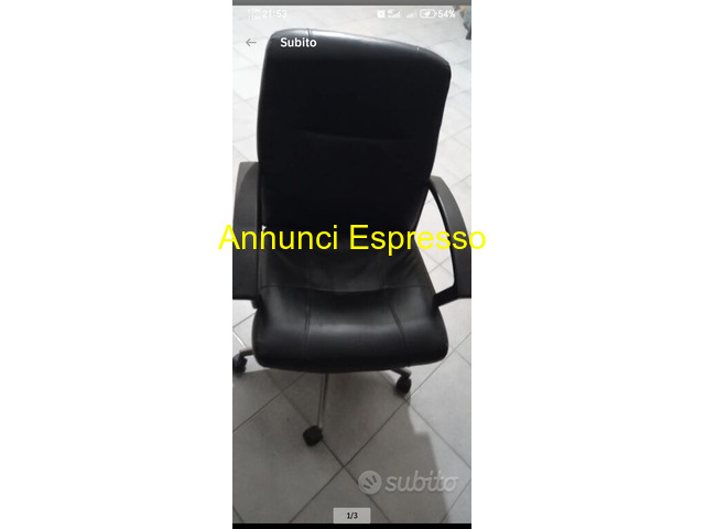 Arredamento casa ufficio prezzo EUR.90,00 Per mancanza di spazio vendesi tre lampadari in vetro murano completi più pezzi di ricambio altro prezzo trattabile a vostra offerta astenersi perditempo chiamare ore pasti grazie per informazioni chiamare [NUM] e sedia da ufficio in pelle nera, utilizzata, con braccioli e rotelle. Design ergonomico per comfort ottimale. Adatta per ambienti di lavoro o studio. Cagliari (CA)