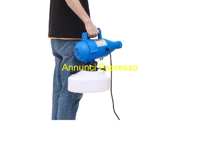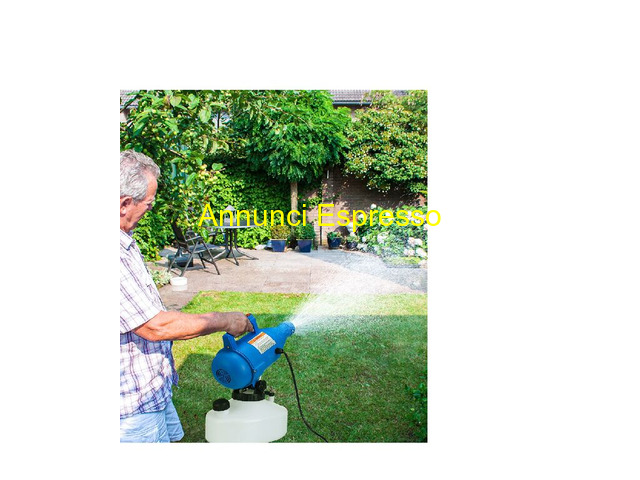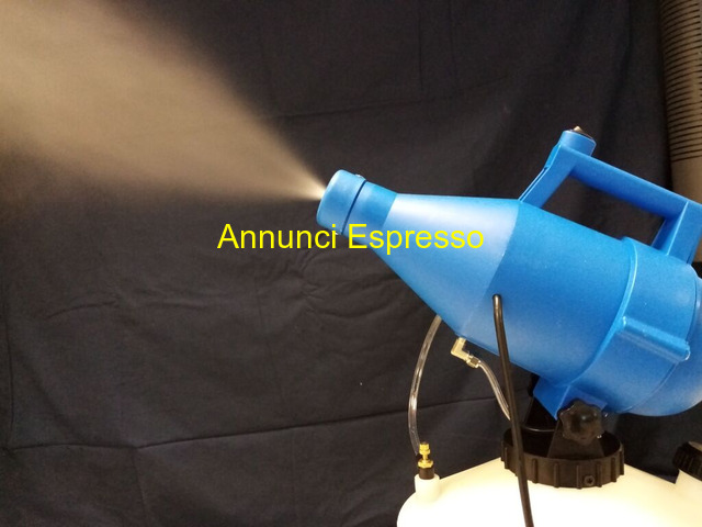 ATOMIZZATORE/NEBULIZZATORE IDEALE PER SANIFICAZION prezzo EUR.75,00 ULTIMI PEZZI DISPONIBILE SUBITO A MAGAZZINO ITALIA NEBULIZZATORE/ATOMIZZATORE ELETTRICO ULV PORTATILE capacit? 4, 5 litri, facile da usare, progettato per erogare nebbia sottile fino 8 - 10 metri; La nebbia creata ? secca e non macchia, quindi ideale per erogazioni di prodotti all?interno di edifici. AMBITO DI APPLICAZIONE: fumigazione in Hotel, centri commerciali, ristoranti, appartamenti; disinfestazione in scuole, teatri, automobili, treni e altri luoghi pubblici; controllo dei parassiti nei giardini. CARATTERISTICHE ? Il serbatoio e il tubo sono realizzati in materiale PP, robusto e resistente alla corrosione ? Ha una comoda maniglia che lo rende pi? portatile e facile da usare. ? Gamma spruzzatura fino a 10 m, altamente efficiente, risparmia tempo, energia e sostanze chimiche. ? L?alta potenza offre spray ad alta velocit? e diffusione rapida. ? Nebulizzazione fine con dimensioni di 0-30 micron, il flusso di spruzzo pu? essere regolato. Nova Milanese (MB)