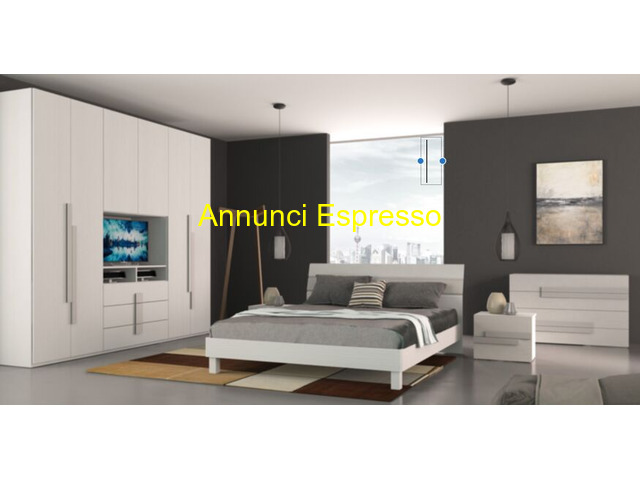 Camera matrimoniale completa prezzo EUR.2.980,00 Camera matrimoniale 21 colore larice bianco/tortora completa di : armadio 6 ante porta TV, 1 comò , 2 comodini a due cassetti, Letto matrimoniale da 169x200x H. 88, 5 completa di materasso da 160x190 altezza 25 a molle insacchettate indipendenti 4 cm di memory , rete da cm 160x190 telaio in ferro verniciato colore nero e doghe in faggio di multistrato. Brugnera (PN)