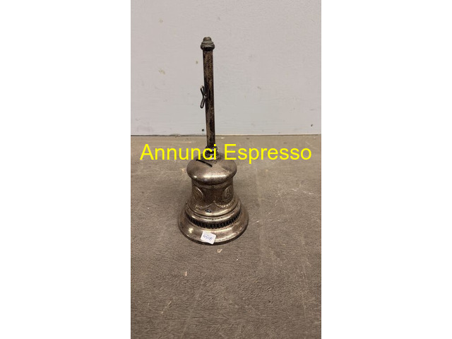 Campanello vintage in metallo argentato, XX sec prezzo EUR.80,00 Campanello vintage, salvadanaio in metallo argentato, XX sec, 29x12cm. Buono stato di conservazione. Viterbo (VT)
