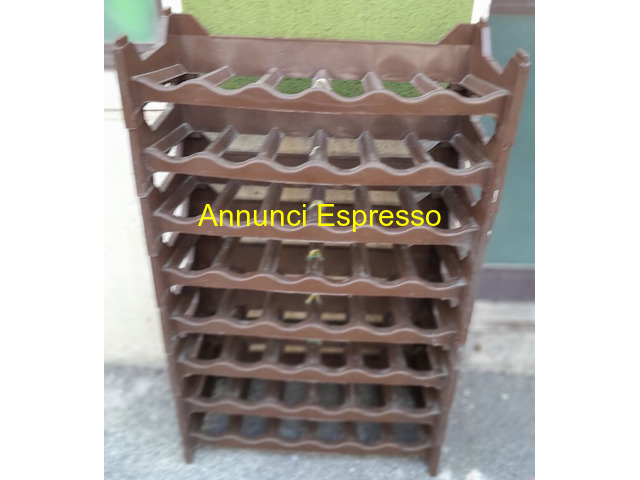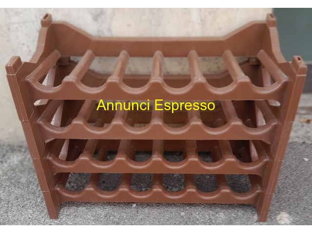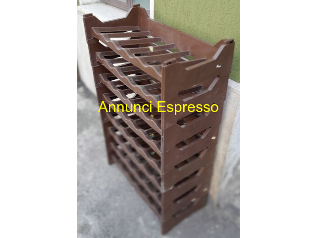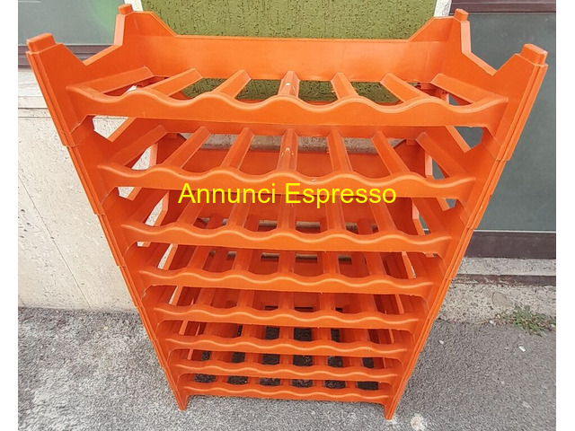Cantinetta 6 posti in plastica 3 serie prezzo EUR.15,00 Cantinetta 6 posti in plastica 3 serie misure 60 x 30 x 12 cm impilabili serie arancione e marrone 8 x 6 vuoti 48 bottiglie 30? a blocco serie 4 pezzi 15? ritiro su Grosseto o spedizione Scaffale in plastica marrone per bottiglie, otto ripiani, struttura robusta, ideale per cantine o spazi di stoccaggio. Grosseto (GR)