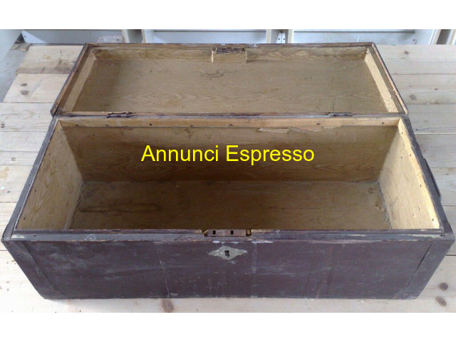 Cassa Baule antica in legno usata per spedire prezzo EUR.145,00 Cassa Baule antica in legno usata per spedire misure lunghezza 80 x lato 34 x altezza 27 antico fine anni 1800 con di foglio attaccato di spedizione 1943 con serratura Ritiro su Grosseto o spedizione. Cassa in legno, usurata, dimensioni grandi, maniglie laterali, ideale per uso decorativo o storage. Grosseto (GR)