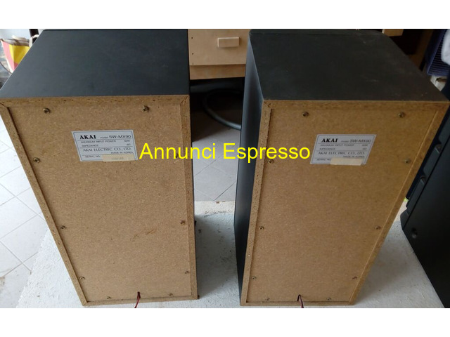 Casse acustiche AKAI 50 watt e 8 ohm prezzo EUR.70,00 Casse acustiche AKAI 50 watt e 8 ohm misure 19 larg. x 21 prof. x 38 cm. altezza a 2 vie e reflex perfettamente funzionanti ritiro su Grosseto o spedizione. Coppia di diffusori audio neri, design verticale, buone condizioni, ideale per utilizzo domestico o professionale. Grosseto (GR)