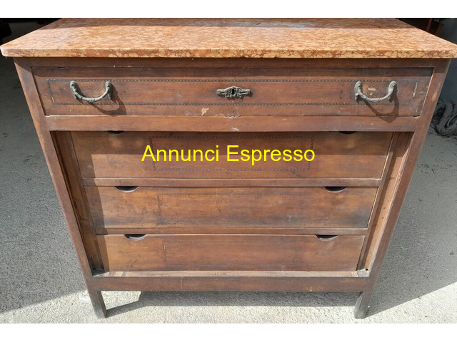 Cassettone Como Specchiera Antico in legno prezzo EUR.290,00 Cassettone Com? Specchiera Antico in legno con piano di pietra, misure cassettone larghezza 117 x profondit? 51 x altezza 110 cm misure specchiera larghezza 104 x altezza 89 x 3 cm con fregio in bronzo parte alta, misura totale cassettiera e specchiera altezza 206 cm x 117 cassetti vuoto zampa 24 cm. con serrature e maniglie tutto originale specchio molato sfaccettato ritiro su Grosseto possibilit? di trasporto nelle vicinanze da concordare. Com? in legno con specchiera, quattro cassetti, finitura chiara. Adatto per camera da letto. Design classico, elegante e funzionale. Grosseto (GR)