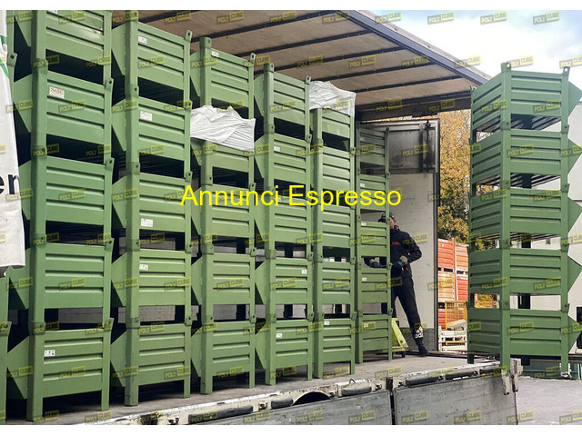 Cassoni contenitori a bocca di lupo in lamiera usa prezzo EUR.1.111,00 casse industriali a bocca di lupo usate impilabili ad incastro. Le pareti e la base sono in lamiera grecata per aumentarne la portata e l?indeformabilità. Il lotto è di OTTIMA QUALITA?. Misure mm 820x620+175 h605 portata 600 kg. Proposta salvo il venduto. Prezzi e disponibilità su richiesta a Polycube srl riferimento codice MC037-32. Possibilità di spedizione. Contenitore di raccolta rifiuti in metallo, colore verde, design robusto, con fondo aperto e sponde rinforzate. Utilizzato per costruzioni o cantieri. Resistente e di facile manovrabilità. Adatto per lo stoccaggio di materiali sfusi. Dimensioni compatte. Ideale per attività industriali. Poppi (AR)