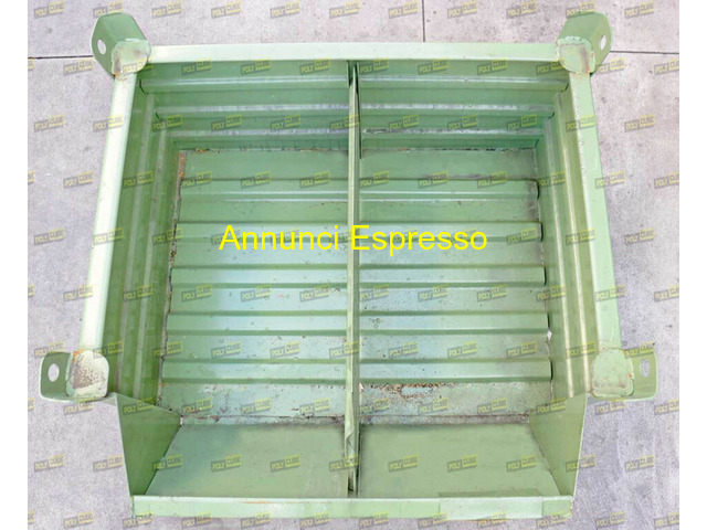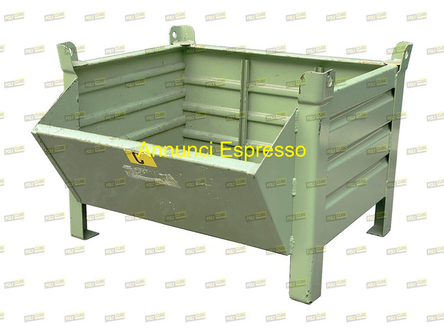 Cassoni contenitori a bocca di lupo in lamiera usa prezzo EUR.1.111,00 casse industriali a bocca di lupo usate impilabili ad incastro. Le pareti e la base sono in lamiera grecata per aumentarne la portata e l?indeformabilità. Il lotto è di OTTIMA QUALITA?. Misure mm 820x620+175 h605 portata 600 kg. Proposta salvo il venduto. Prezzi e disponibilità su richiesta a Polycube srl riferimento codice MC037-32. Possibilità di spedizione. Contenitore di raccolta rifiuti in metallo, colore verde, design robusto, con fondo aperto e sponde rinforzate. Utilizzato per costruzioni o cantieri. Resistente e di facile manovrabilità. Adatto per lo stoccaggio di materiali sfusi. Dimensioni compatte. Ideale per attività industriali. Poppi (AR)