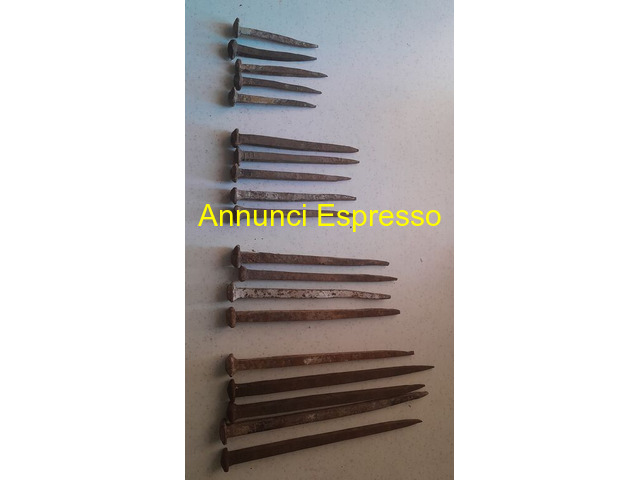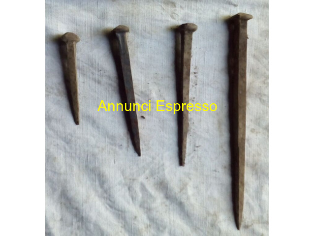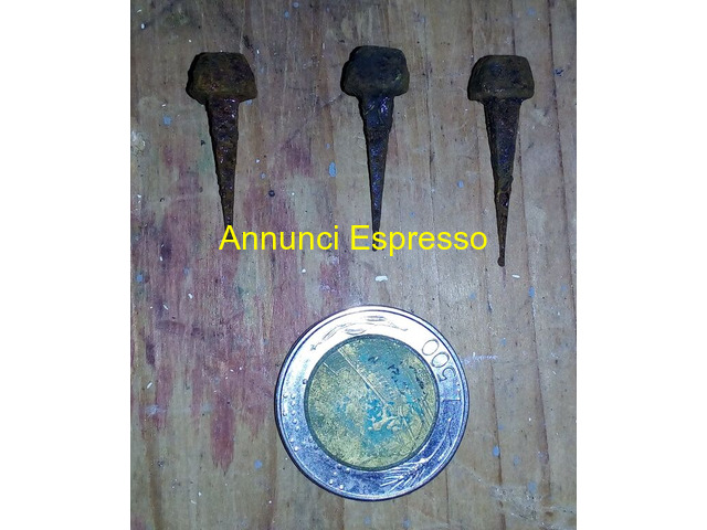 Chiodi Antichi forgiati a mano MIS. [NUM] prezzo EUR.5,00 Chiodi antichi forgiati a mano lunghi [NUM] cm , a 5 euro l'uno, disponibili anche chiodi di misura piccola 2, 5 / 3 cm con testa 6 x 6x 6 mm. quadra sempre 5 Euro cadauno, ho in blocco scatola completa da 500 pezzi da concordare , ritiro su Grosseto o spedizione. Grosseto (GR)