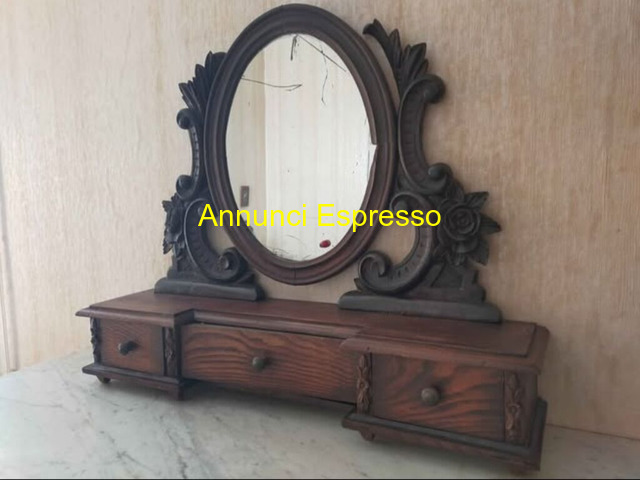 COMÒ CON COMODINI TOLETTA prezzo EUR.350,00 Armadio antico in legno, con specchi e due cassetti, stile classico, ottime condizioni, ideale per arredamento vintage. Marta (VT)