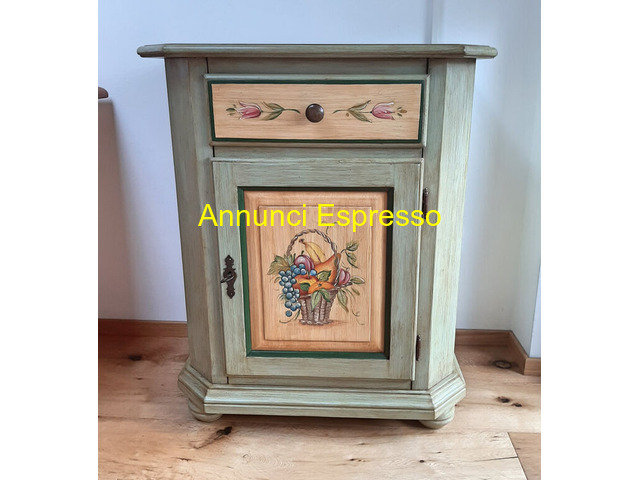 comodino decorato a mano in abete prezzo EUR.750,00 comodino decorato a mano in abete con cassetto e anta il mobile verrà realizzato nuovo con possibilità di variare colori e decori Trento (TN)