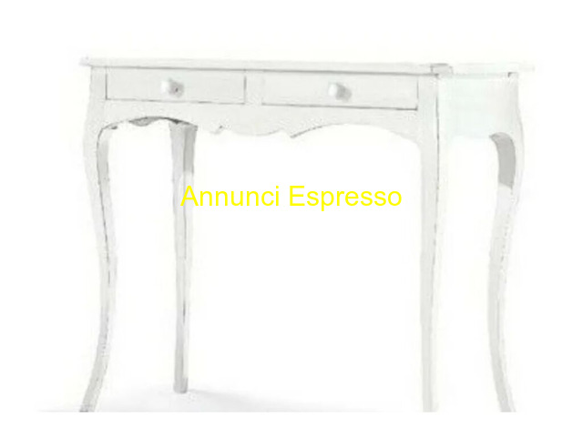 Consolle prezzo EUR.212,00 Tavolo da scrivania in legno bianco con due cassetti, stile classico, gambe curve, adatto per arredamento interno. Agrigento (AG)