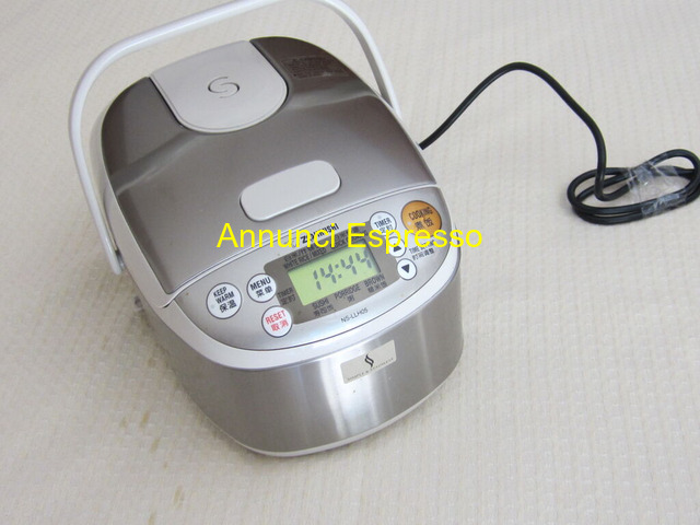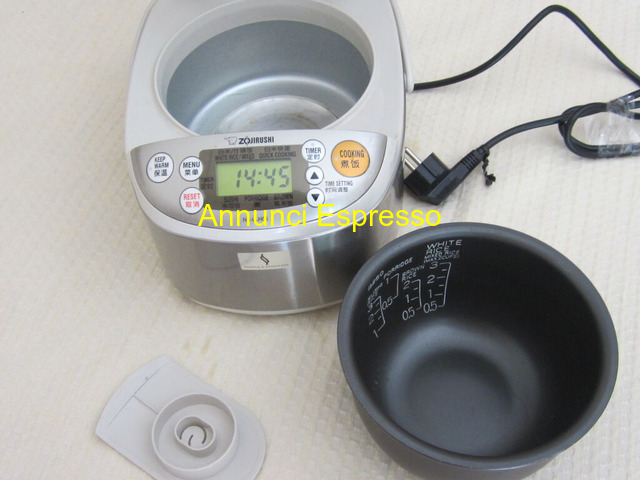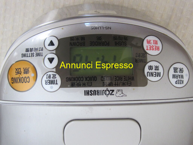 Cuociriso e scaldariso Micom, 3 tazze-ZOJIRUSHI prezzo EUR.150,00 ZOJIRUSHI Micom Cucinariso- ( TEL [NUM] ) RISCALDA RISO d'oltremare tipo NS-LLH05-XA 3 tazze/0, 54 PROFESSIONALE IDEALE X LA PREPARAZIONE DEL SUSHI. quinoa con salmone al vapore-farina d'avena-riso nero con funghi-ramen con brodo di miso e gnocchi COME NUOVO USATO UNA 10 DI VOLTE ?FUNZIONAMETO A CORRENTE ELETTRICA EUROPEA-Capacità 6 misurini-Audio in GIAPPONESE Inglese-Colore Argento Materialeacciaio-FormaOVALE-Funzioni speciali Programmabile, Tecnologia DSP, Tecnologia FuzzyLogic, Tecnologia di riscaldamento a induzione Riso, Riso GABA, Porridge, Multi cooking, Cuociriso a pressione, mantenimento della temperatura. Peso articolo5, 9 Kg. 220~230V PAGATO EURO 270 DA NUOVO VENDO EURO 150 INTRATTABILE INCLUSA EVENTUALE SPEDIZIONE PER ULTERIORI INFORMAZIONI CHIAMA AL [NUM] Cuociriso marca Sanyo, modello con timer digitale. Include ciotola interna. Usato, buone condizioni. Adatto per cucinare riso. Gragnano (NA)