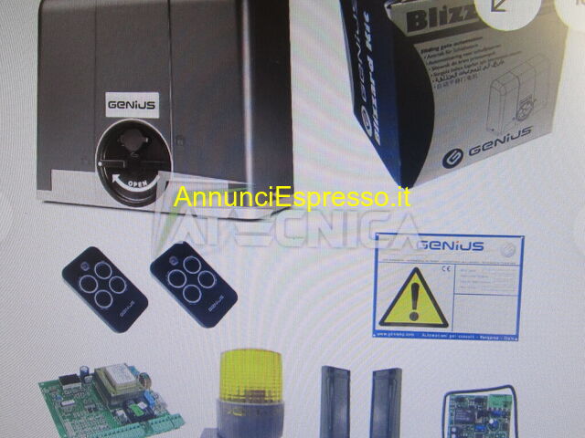 FAAC GENIUS KIT MOTORE COMP X AUTOMAZIONE CANCELLI prezzo EUR.270,00 Kit MOTORE completo per automazione CANCELLO scorrevole (( TEL [NUM] )) DA 500 KG DELLA FAAC GENIUS BLIZZARD 230V completo di Motoriduttore 230V per cancelli scorrevoli fino a 500 Kg di peso, , molto robusto, con sistema di sblocco versatile a manopola rotativa, risolve i problemi della leva in apertura in caso di impedimenti a terra e finecorsa magnetici. Provvisto di encoder di sicurezza quindi all'ostacolo il cancello inverte la manovra, ampia selezione di logiche di funzionamento e parametri, grazie alla centrale SPRINT 382, installata all'interno del motore in box di protezione in plastica, con pulsanti di programmazione esterni. +++. SCHEDA KEY DELLA PREMIUM 900CT 1RS- Centrale di comando 230 Vac per un motore per serranda o cancello scorrevole. -Programmazione più intuitiva grazie ai Led a 3 colori, dip-switch e trimmer. + LAMPEGGIANTE ++ TELECOMANDI . . TUTTO NUOVO IMBALLATO VENDO CAUSA SEQUESTO ABUSIVO IMMOBILE ? PAGATO TUTTO 430 EURO ? VENDO 270 EURO Sarno (SA)