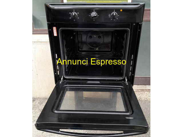 Forno Elettrico Ariston FS 41 Nuovo Completo prezzo EUR.100,00 Forno Elettrico Ariston FS 41 Nuovo Completo di tutto. non ventilato. Da incasso, elettrico statico misure standard esterne 59 x 59 cm, misure per alloggio forno 56, 5 x 56, 5 x 56, 5 cm. Funzioni elettrico statico, cottura sotto, sopra o entrambi, timer, temperatura, gira arrosto grill e luce , accessori piano leccarda, griglia, supporto porta grill, perfettamente funzionante e pulito mai installato internamente. Ritiro su Grosseto o spedizione. Forno elettrico nero, 3 manopole, vetro trasparente, condizioni nuovo mai installato, ideale per cucinare. Grosseto (GR)