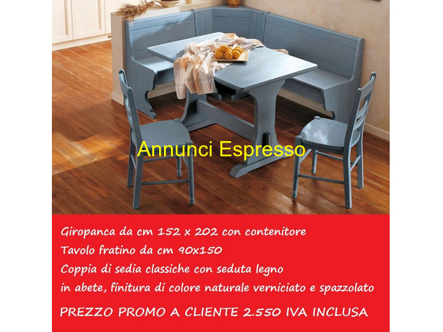 giropanca abete prezzo EUR.2.550,00 Giropanca cm 152 x 202 con contenitore Tavolo fratino cm 90 x 150 numero 2 sedie classiche con seduta legno il tutto in abete, finitura di colore naturale verniciato e spazzolato Trento (TN)