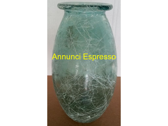 Grande vaso in vetro Verde-Azzurro di forma Ovale prezzo EUR.80,00 Grande vaso in vetro Verde-Azzurro di forma Ovale, Origine Spagnola realizzato a mano. Misure altezza 31 x larghezza 27 x 12 foro ingresso 10 cm. ritiro su Grosseto o spedizione . Vaso in vetro trasparente con venature, forma tondeggiante, decorativo. Adatto per arredamento o fiori. Grosseto (GR)