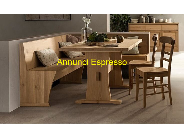 gruppo panca in rovere prezzo EUR.3.200,00 N. 1 Giropanca in rovere con contenitore, lato corto cm 152 e lato lungo cm 202, N. 1 Tavolo fratino in rovere con piano da 4 cm di spessore, 150x90 N. 2 Sedia in rovere con seduta legno, modello bistrot Trento (TN)