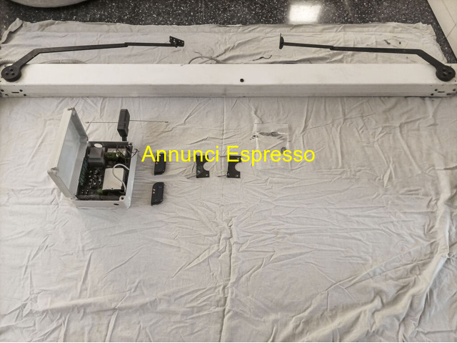 Kit automazione garage prezzo EUR.300,00 Attrezzatura per automazione porte, composta da un motore, bracci di movimentazione e pezzi di fissaggio. Ideale per installazione in porte a battente. In regalo una seconda scheda di controllo. Niente spedizione, solo consegna a mano. Bologna (BO)
