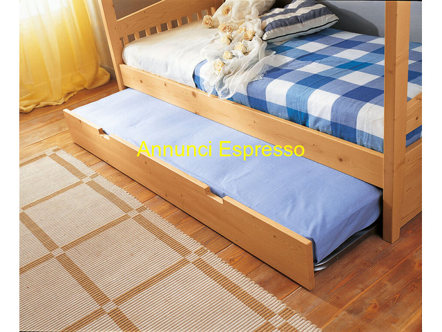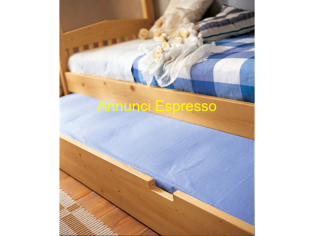 letto castello ginevra abete prezzo EUR.1.750,00 Letto a castello Ginevra in abete di pregio , letto superiore ed inferiore predisposti per rete e materasso da cm 90x200. Terzo letto estraibile da cm 80x200 E' inclusa la scaletta a pioli e la protezione anteriore. Sono incluse le 3 reti, restano esclusi i materassi Trento (TN)