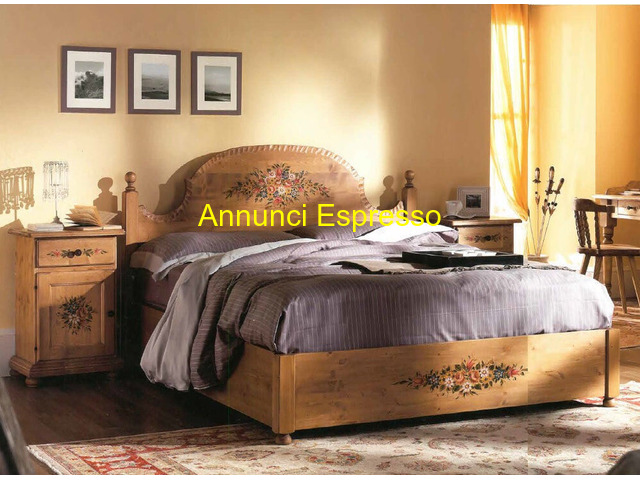 letto matrimoniale decorato a mano prezzo EUR.3.050,00 Letto matrimoniale con giroletto in abete DEC 65 , decorato a mano, predisposto per rete da cm 160x200 rete e materasso esclusi dal prezzo) Altezza cm 114, larghezza cm 169 e profondità cm 209. Coppia di comodini DEC 59 altezza cm 73, larghezza cm 48 e profondità cm 40. Dotato di 1 cassetto e 1 anta. Trento (TN)